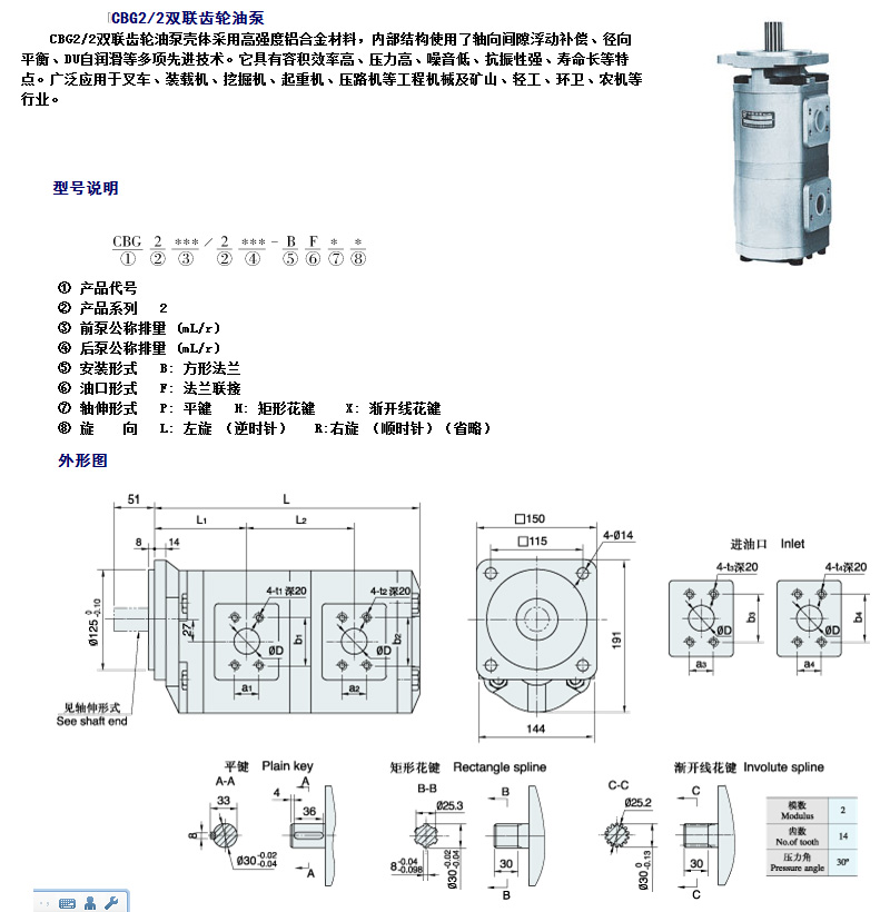 CBG2/2雙聯(lián)齒輪油泵